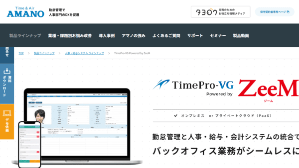 | 製品サイト | https://www.tis.amano.co.jp/product/timepro-vg_zeem/ |